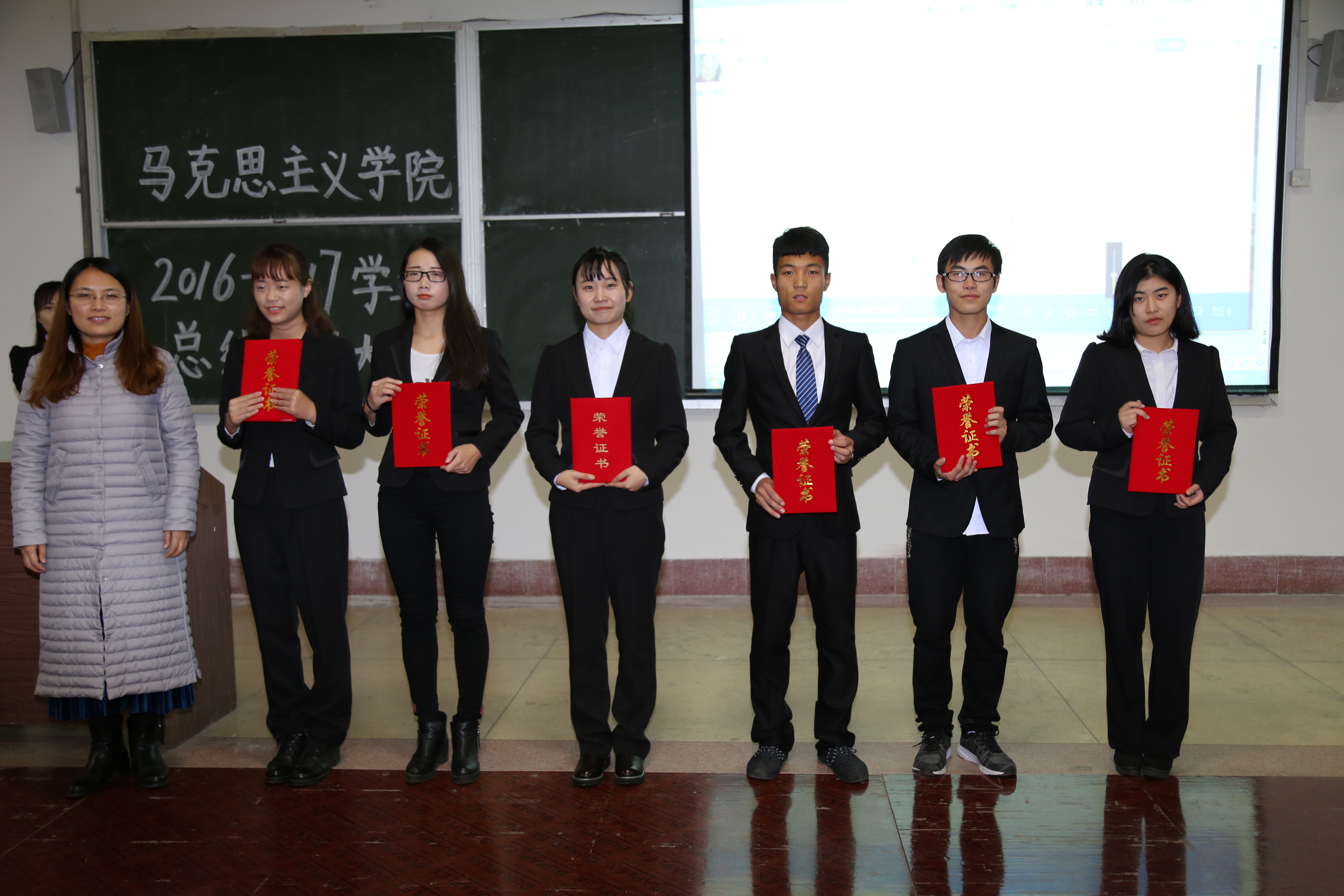 为表彰在上一学年各项活动中表现优秀的集体与个人,激励全体马院同学在新学年再创佳绩,2017年11月12日晚马克思主义学院于齐贤楼2109教室举行了2016—2017学年总结表彰大会,出席本次大会的领导老师有马克思主义学院党总支书记陈子文、院长刘勇、学生工作办公室主任赵静、团总支副书记崔秀玲。马克思主义学院全体同学参与本次表彰大会。