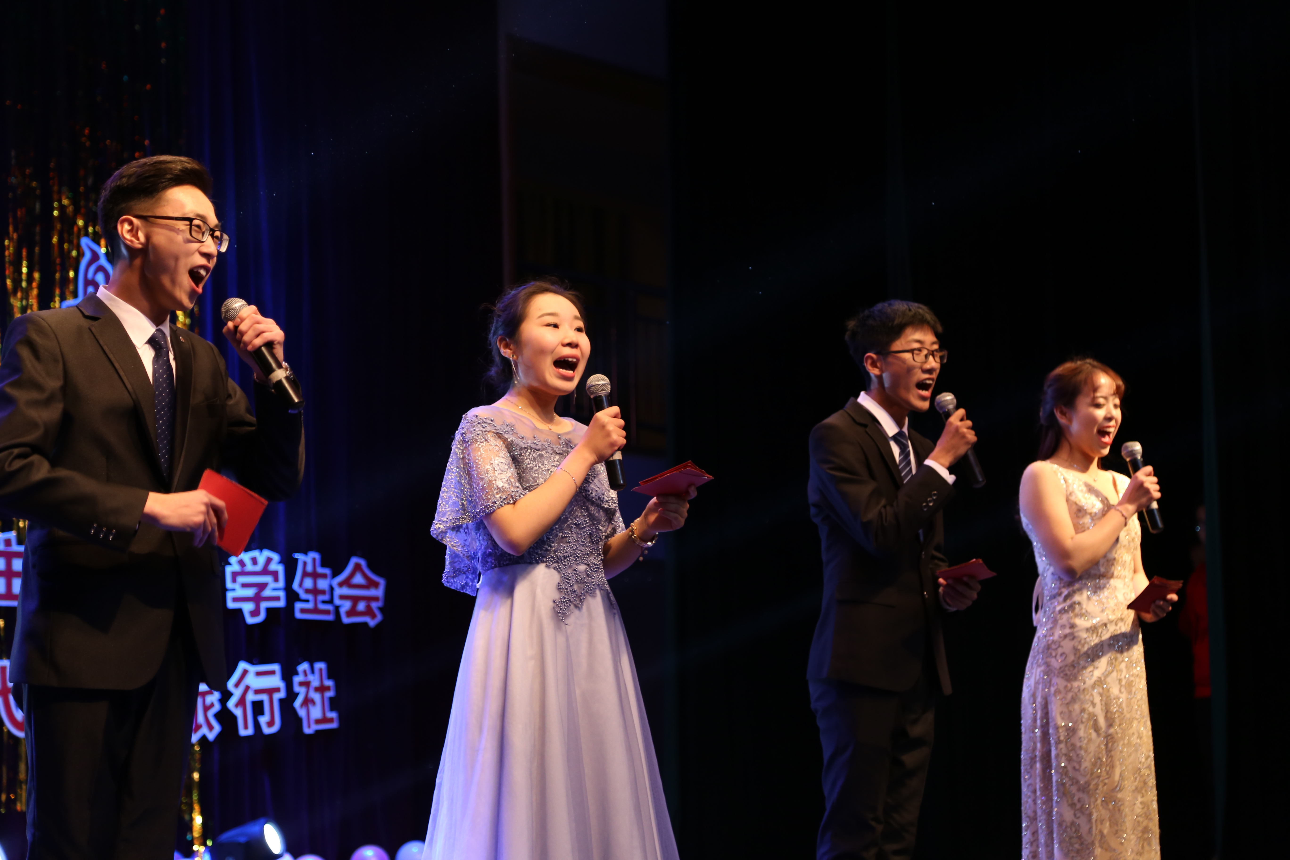 伴随着悠扬的乐曲,暖场视频中各位老师和学生代表为大家送上新年祝福。暖场视频结束,舞台灯光渐弱,又倏然亮起,舞狮组合伴随动感音乐一跃而上,各种高难度动作让大家惊奇不已,现场气氛不断高涨。在传统的舞狮与现代青春活力的开场舞表演后,气氛燃爆,同学们早已按捺不住激动的心情,在欢呼声中,晚会正式拉开帷幕。首先是王雨晴和董淇方带来歌曲《最美的太阳》,励志的歌词,嘹亮的歌声,高亢的节奏,都在告诉我们逐梦之路心怀暖阳,便有了抵抗一切的勇气和力量。与此同时,晚会上微信墙也在时刻更新同学们的动态,衷心的祝福、诙谐的段子、积极的鼓励构成了一道靓丽的风景线。接下来朝气绚丽的舞蹈《cheer up》,风格多变且深受喜爱的歌曲串烧紧接而来,带给观众莫大的惊喜,台上热火朝天,台下欢呼不断。歌舞之后,就是别具风格的小品《扎心了,我的彩电》,默契的配合,幽默的台词,滑稽的表演,让大家欢笑不止,拍手叫绝,不愧是夺得“公寓故事”一等奖的佳作。继而动听的独唱《我的歌声里》,潇洒的武术表演和感人的音乐剧《仰望星空》轮番而至,给观众们带来了一场视听盛宴,也让现场成为了欢乐的海洋。而让大家捧腹大笑,印象深刻的还属接下来的相声《众口难调》和小品《土星秀》,精巧的改编,毫无保留的表演,传统文艺与现代娱乐的结合,深入人心,频频获赞。晚会进行到这里,总会有一些小惊喜,这一天恰巧平安夜,于是圣诞老人给大家送来了糖果,祝福各位甜甜蜜蜜,平平安安。小插曲后精彩继续,魅力四射的歌舞《精舞门》,曼妙民族舞《新疆舞》以及唯美凄兮舞蹈《大鱼》纷纷亮相,虽风格迥异,但都舞出了青春的靓丽,跳出了生命的多姿和活力,博得如雷般的喝彩掌声。最后,学生会不仅为大家走了一场秀,还献上部长舞助兴,将晚会推向高潮。美好的时光总是短暂的,但留下的回忆将会长久,晚会也在《明天会更好》的美妙歌声中圆满落幕。
