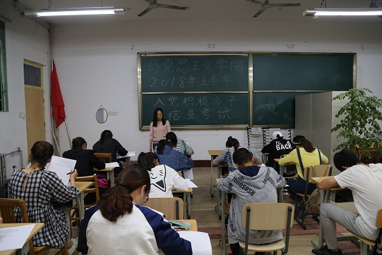 为规范发展党员工作,检验入党积极分子培训学习成果,2018年5月13日晚,马克思主义学院2018年上半年入党积极分子结业考试于齐贤楼2207教室举行,本次考试由马克思主义学院学生工作办公室主任赵静老师和臧超越、李振超两位同学监考,2018年上半年入党积极分子全体参加。