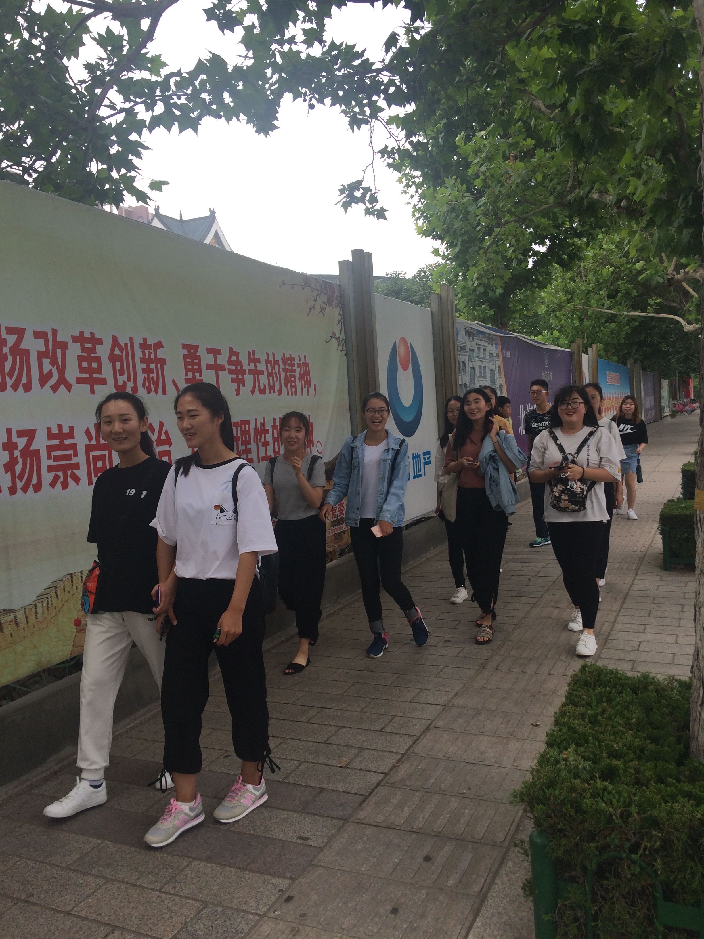 夏季略微炎热的天气并没有影响同学们满腔的热情,大家相约潍坊学院南门,各自组队相约前行,一路上同学们主动清理路上的垃圾,宣传环保,并用自身的行动为社会的进步贡献力量。大家相互鼓励,你追我赶,经过近两个小时的行程,终抵达各自徒步的终点:潍坊市博物馆、潍坊学院北门等地。