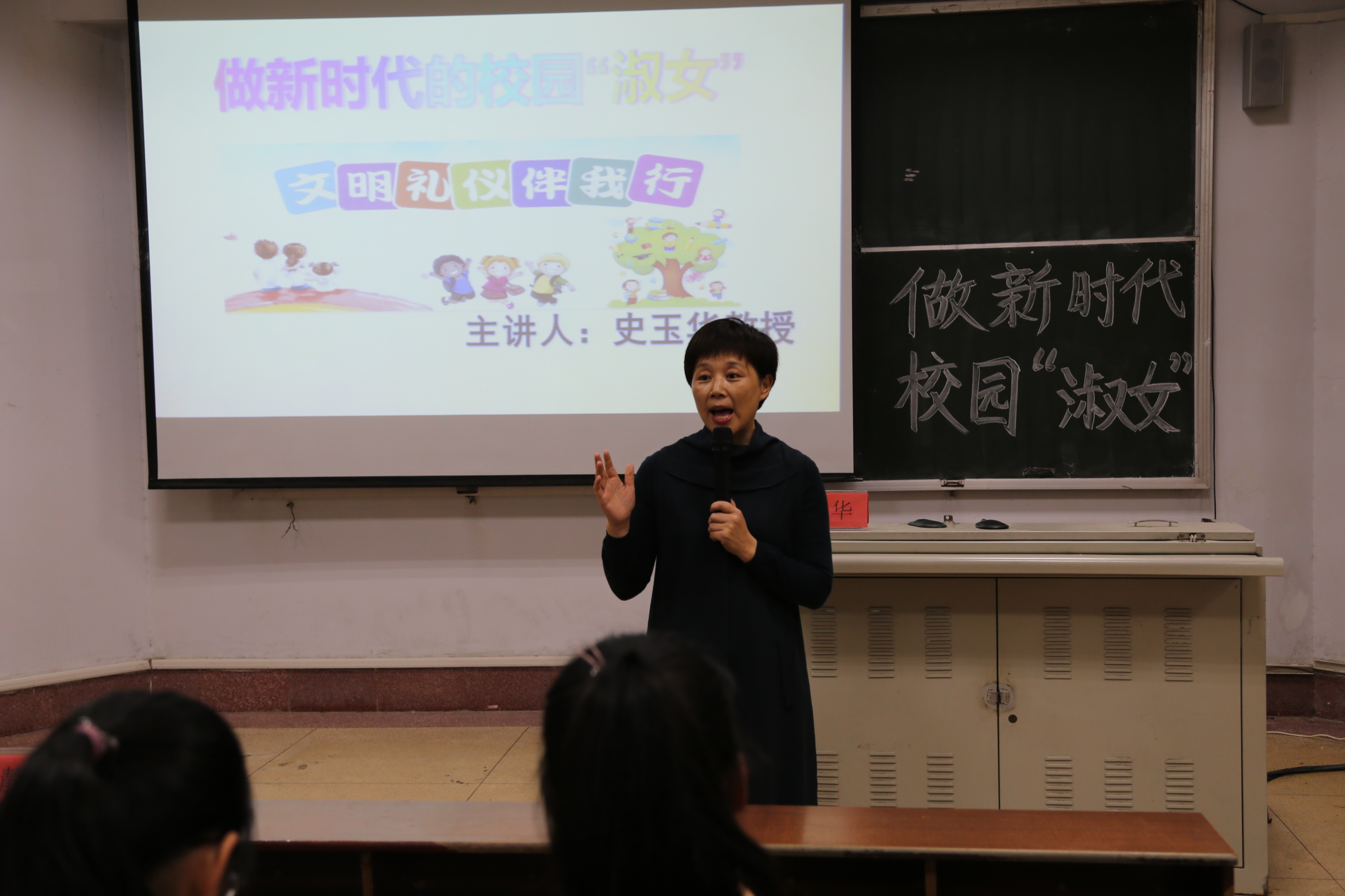 为了让同学们了解礼仪的重要性,锻炼他们的气质,也为了提高同学们日常的人际交往能力以及为人处世的礼仪问题,2018年11月5日晚马克思主义学院在齐贤楼2210举行了由史玉华副教授主讲的以“塑造美丽形象,展示优雅姿态——做新时代的淑女”为主题的专题讲座。