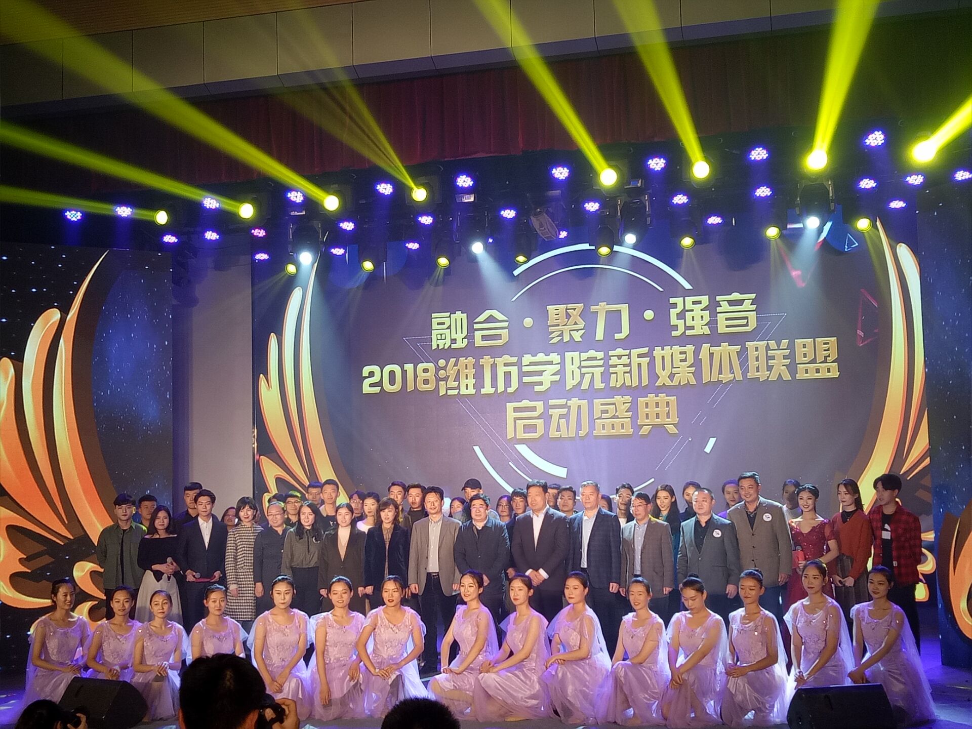 2018年11月9日下午,以“融合聚力强音”为主题的2018潍坊学院新媒体联盟启动盛典在图书馆报告厅隆重举行。