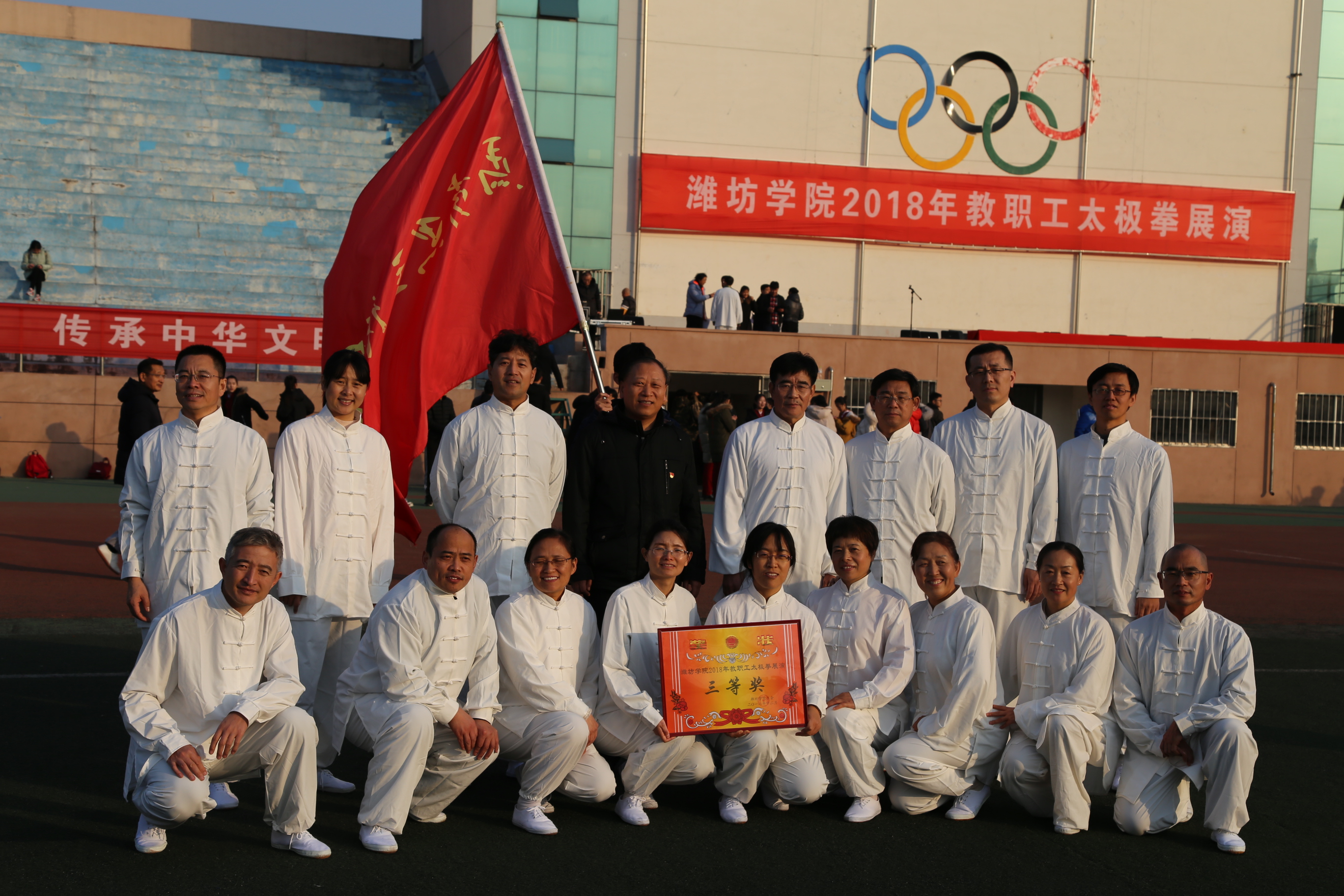 为了建设中华民族的优秀传承体系,弘扬中华民族的优秀传统文化,潍坊学院于2018年12月20日在操场开展了2018年教职工太极拳展演活动,马克思主义学院分会积极组织教职工参加。