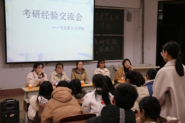 为了加强学生对考研的理解,营造积极向上的学风,提高学生对考研的积极性,正确快速地掌握高效学习的方法,马克思主义学院于2018年2月24日在齐贤楼2210教室进行了考研经验交流会,此次交流会邀请了部分参加考研的大四学生。