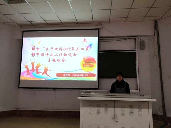 为深入学习贯彻习近平新时代中国特色社会主义思想和习近平总书记的重要讲话精神,让同学们了解学校《关于做好2019年五四表彰申报评选工作的通知》的相关内容和文件精神,马克思主义学院政治学与行政学专业一班于3月15日在齐贤楼开展了主题班会。