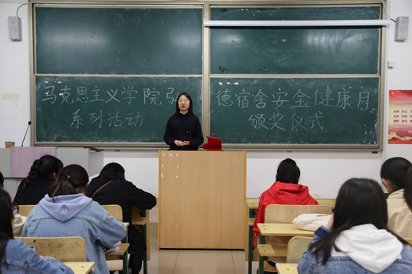 为加强马克思主义学院学生公寓安全文明创建工作,推进马克思主义学院文明宿舍、平安公寓建设,响应弘德书院“宿舍安全健康月”的号召,马克思主义学院积极开展宿舍安全健康月活动,并于2019年4月28日晚7点在人合楼8330举行了颁奖仪式。