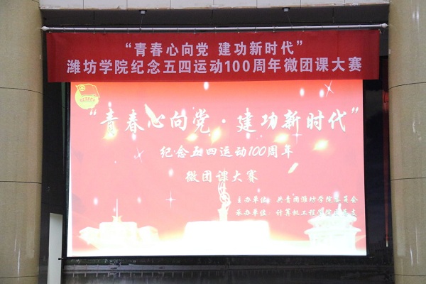 为庆祝中华人民共和国成立70周年、五四运动100周年,高举中国特色社会主义伟大旗帜,深入学习宣传贯彻习近平新时代中国特色社会主义思想,积极促进基层团组织建设和发展,增强团员意识教育,2019年5月16日由潍坊学院团委主办、计算机工程学院承办的以“青春心向党,建功新时代”为主题的微团课大赛决赛在行政楼报告厅举行,马克思主义学院通过前期海选进入决赛,马克思主义学院的决赛微团课为“团员义务知多少”。