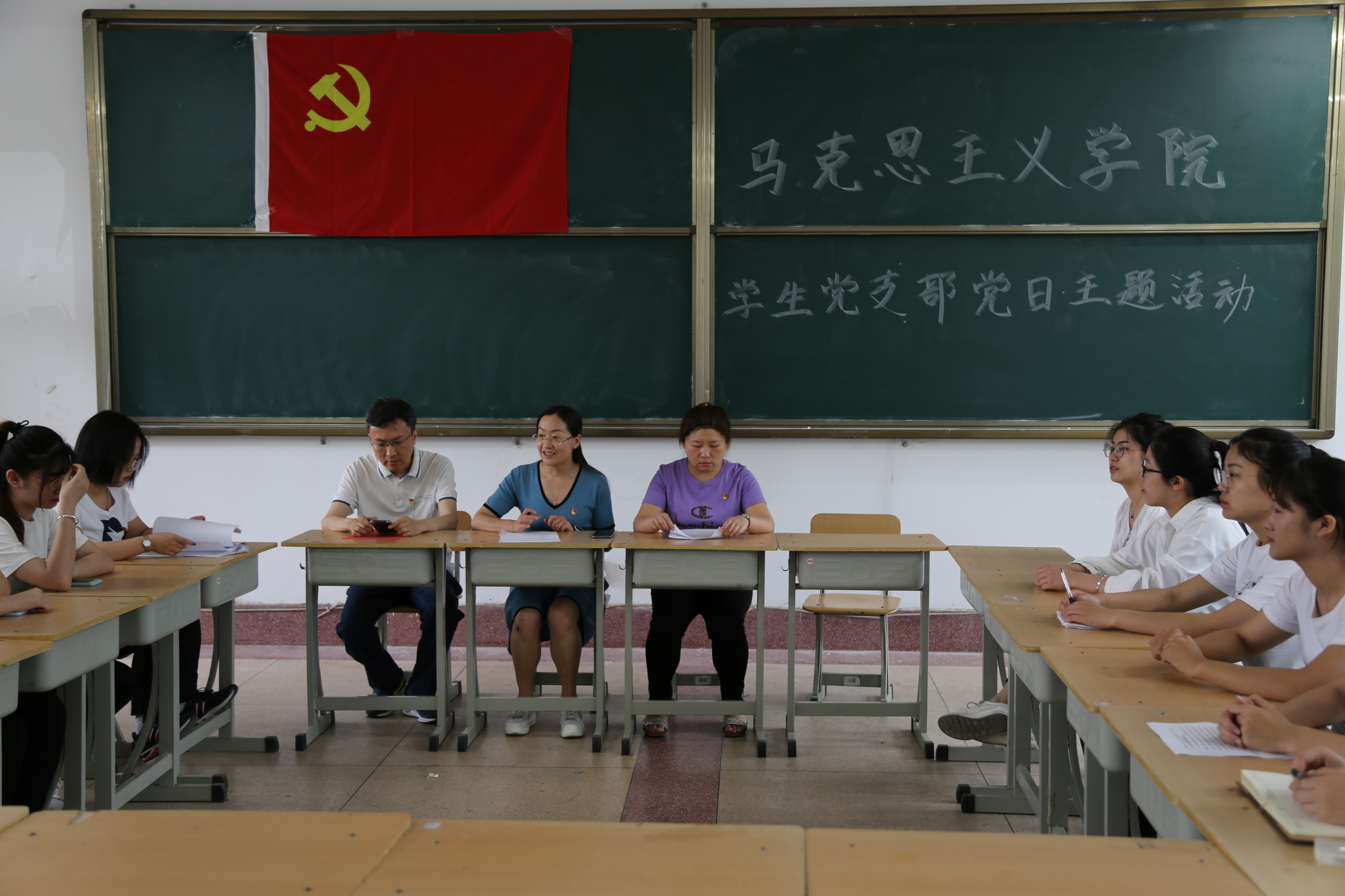为激励各位党员重温初心、感悟初心、践行初心,勇于担当责任,确保主题教育取得扎扎实实的成效,马克思主义学院学生党支部于2019年6月16日上午在齐贤楼2206教室开展了“不忘初心,牢记使命”主题党日活动。参加此次活动的马克思主义学院学生党支部书记赵静、组织委员王锋、宣传委员吴娜以及马克思主义学院学生党支部全体学生党员。