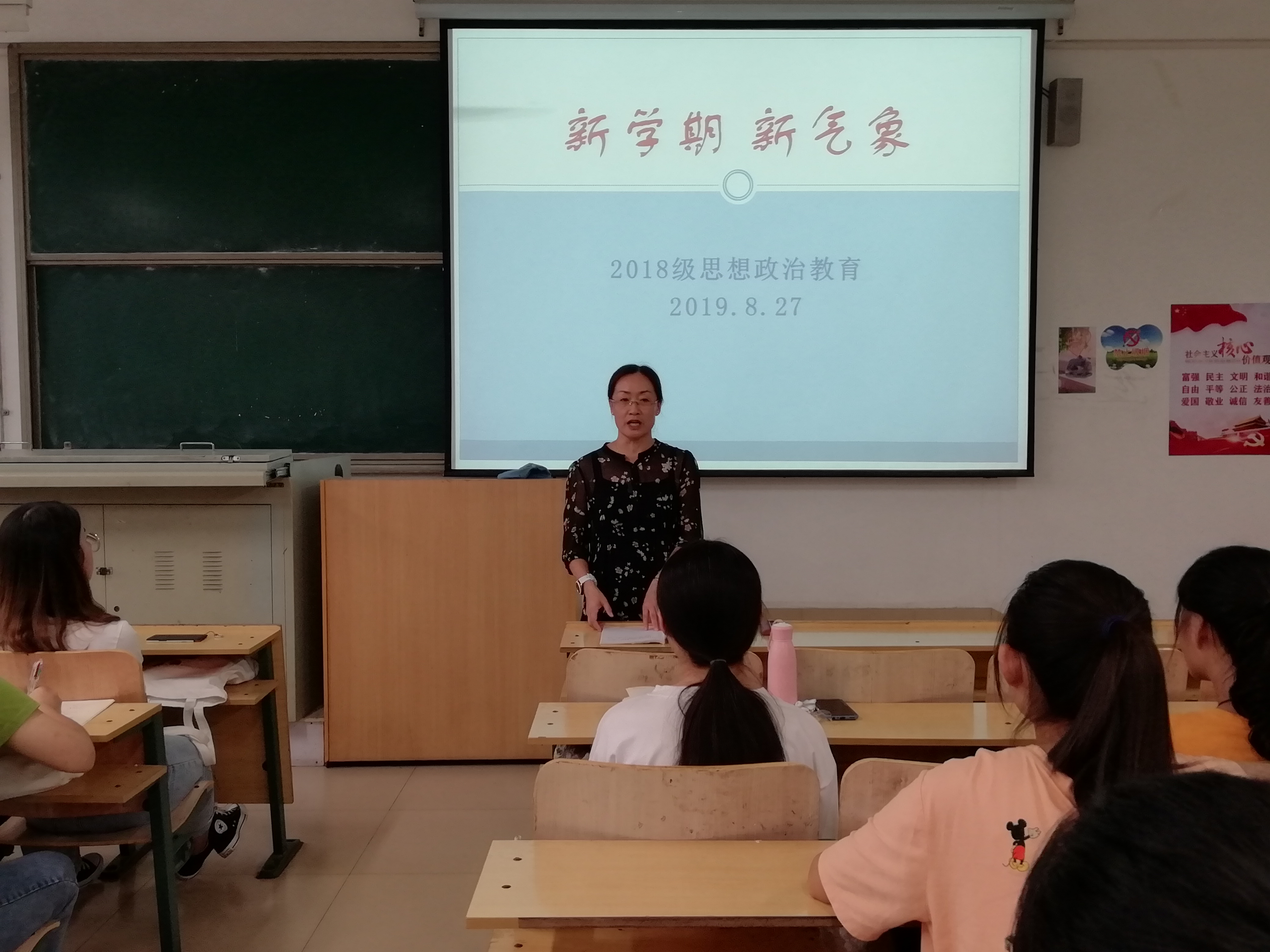 为迎接新学期,让同学们更快地进入状态,以崭新的面貌开启新学期的生活,树立良好的学风,马克思主义学院于2019年8月27日展开以“新学期,新气象”为主题的系列班会。班会由辅导员赵静老师主持。