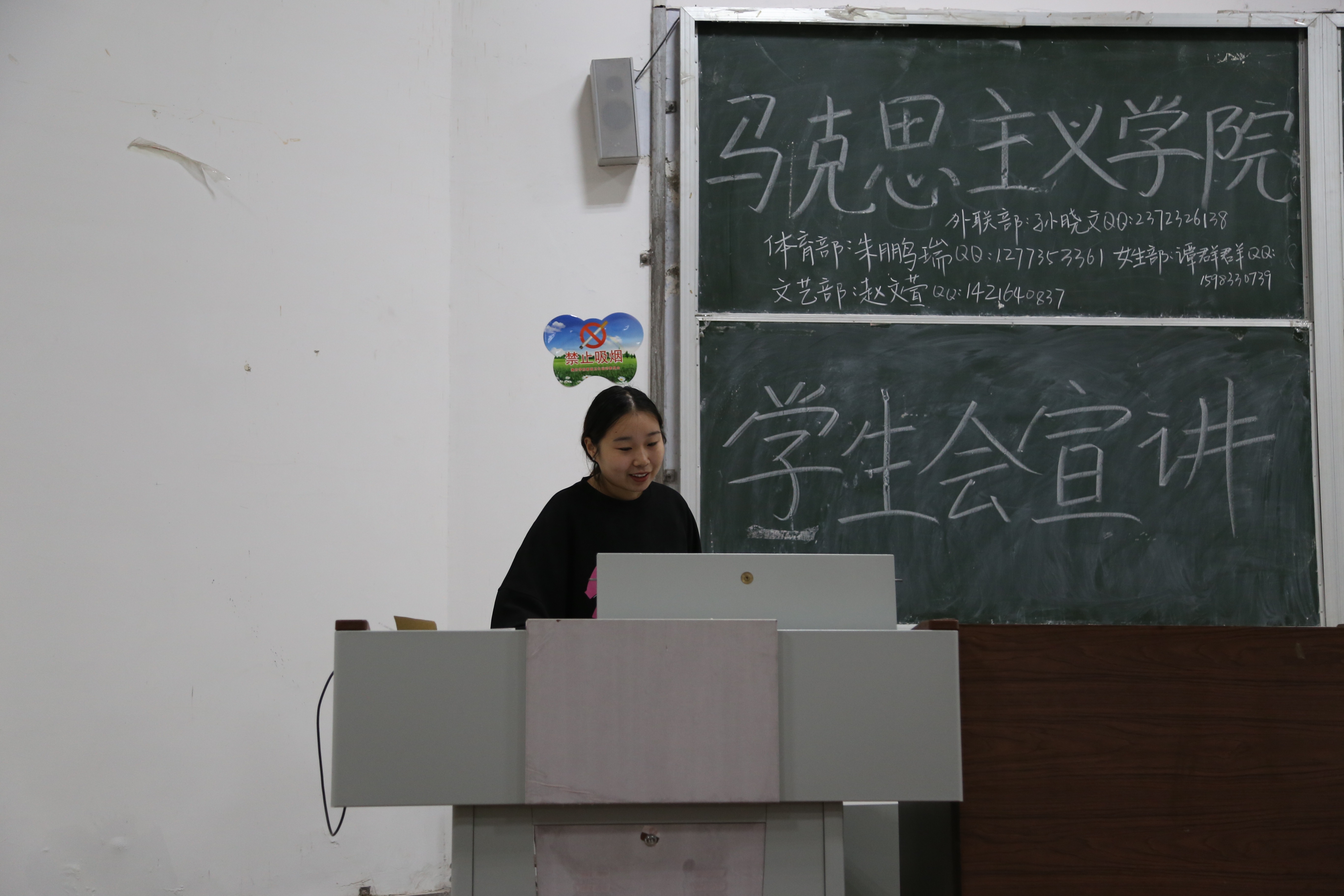 为欢迎2019级新生,进一步加强学生队伍建设,为马克思主义学院学生会注入新的血液,为新生创造一个展示自我的舞台,发挥自己的才能,2019年10月16日马克思主义学院于齐贤楼2109教室举办了马克思主义学院学生会宣讲活动,参加此次活动的有学生会全体副部长及以上成员以及2019级全体新生。
