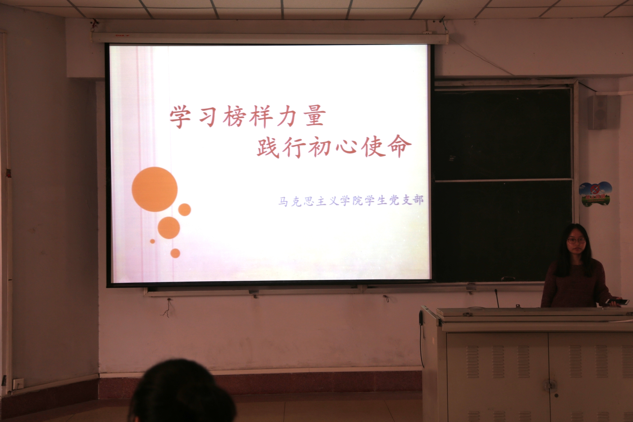 为发挥优秀共产党员的领导带头作用,促进学生党员学习榜样力量,扎实有效推进“不忘初心,牢记使命”主题教育开展。马克思主义学院于2019年10月24日在齐贤楼2210教室开展“学习榜样力量,践行初心使命”主题教育活动,集中学习《灯塔大课堂》课程,并观看了《榜样4》专题视频。学生党支部书记赵静,宣传委员吴娜、李蕾老师,以及9名学生党员参与本次活动。
