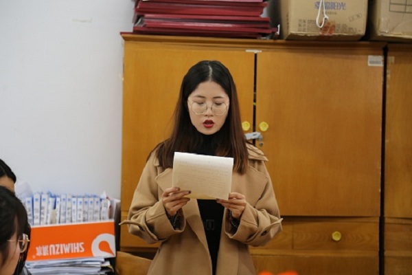 会议尾声,学生党支部书记赵静老师对本次会议进行了总结。她对两名按期转正的同志表示衷心的祝贺并给予殷切希望,她要求两位同志以此为契机,进一步加强学习,努力工作,真正起到模范带头作用。至此,本次预备党员转正支部大会圆满结束。