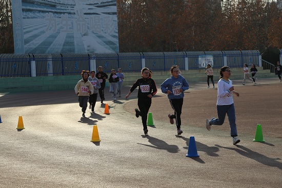 首先进行比赛的是教工组,同学们自发为老师提供服务。临近比赛开始,老师们积极准备热身活动,他们压腿热身,慢跑蓄力。一点半号令枪准时响起,甲组老师们一同起跑,赛况激烈,全体参赛队员按照田径场与校内环形路的指定路线奋力奔跑,他们精神饱满,情绪高昂,你追我赶。两点钟准时进行了乙组老师的比赛。虽然气温较低,但参赛教职工们的活力与热情却成为途中一道亮丽的风景线,最终教工组在马克思主义学院党总支书记陈子文老师的带领下,男子甲组老师侯国亮老师以第二名、陈子文老师第七名;女子甲组赵静老师第二名、李伟红老师第三名、曲爱弟老师第十三名、孙西玲老师第十四名;男子乙组姜官勇老师第二名、李蕾老师第九名。老师们以团体总分52分的优异成绩取得团体第一名。