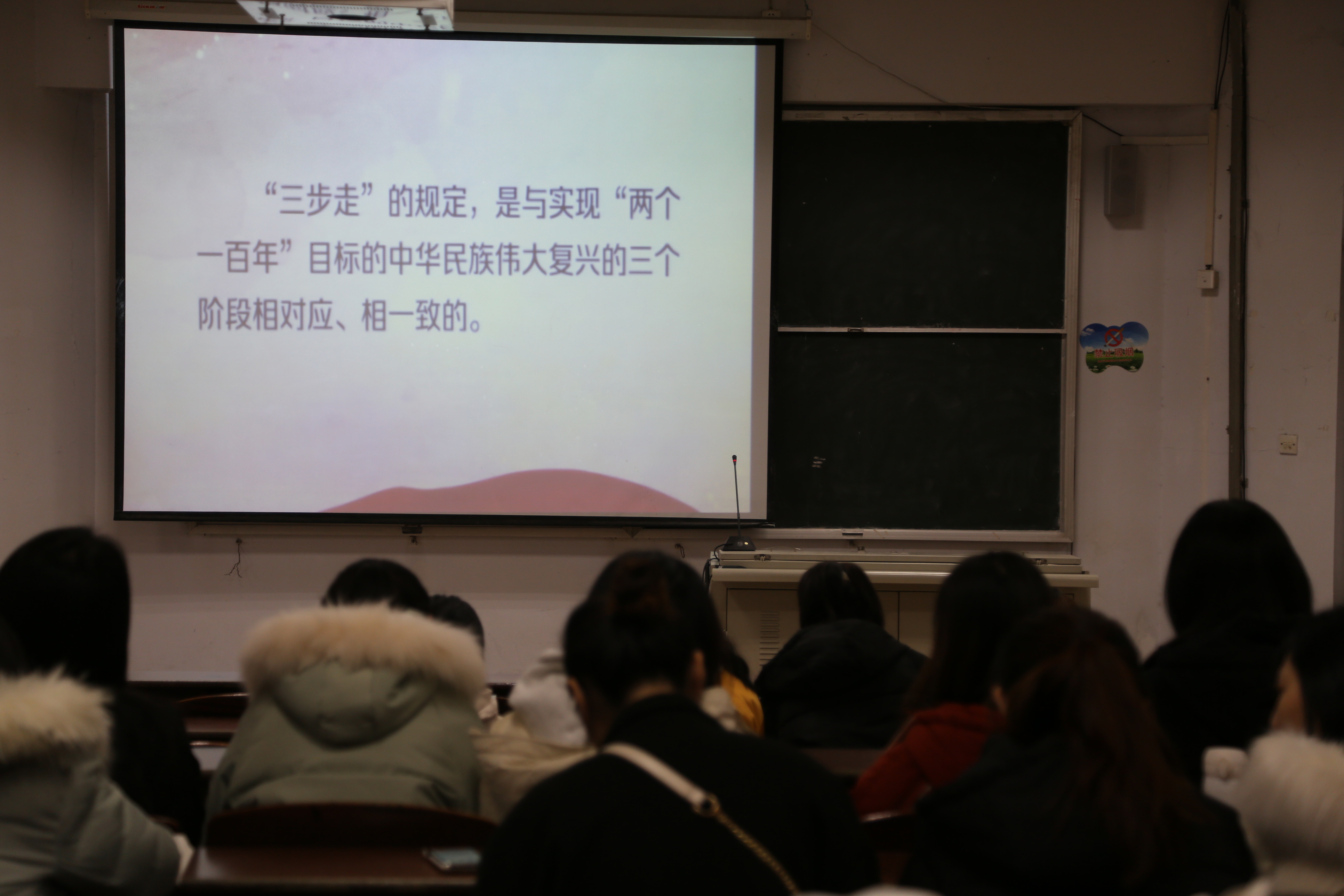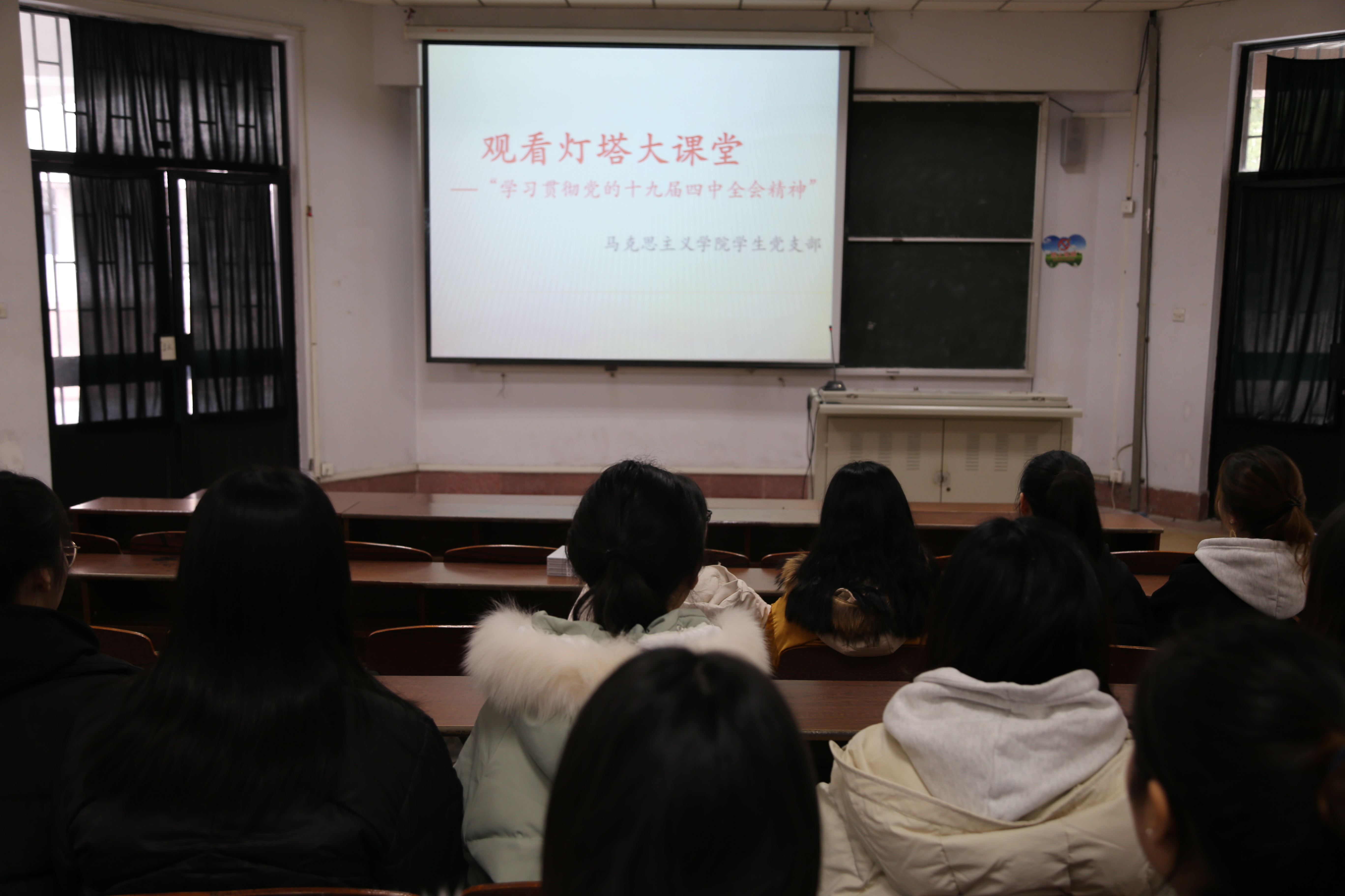 为学习贯彻党的十九届四中全会的精神,提高党员思想政治素质,坚定共产主义理想信念,2019年12月23日,马克思主义学院学生党支部在齐贤楼2210教室观看了灯塔大课堂第六课,学生党支部成员参加此次活动。