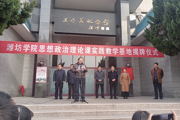 11月28日,“潍坊学院思想政治理论课实践教学基地”揭牌仪式暨马克思主义学院党员党性教育活动在王尽美烈士纪念馆举行。马克思主义学院党总支书记陈子文,院长刘勇,副院长赵允福,诸城市退役军人事务局党组书记、局长孙业君等参加揭牌仪式。揭牌仪式由赵允福主持。