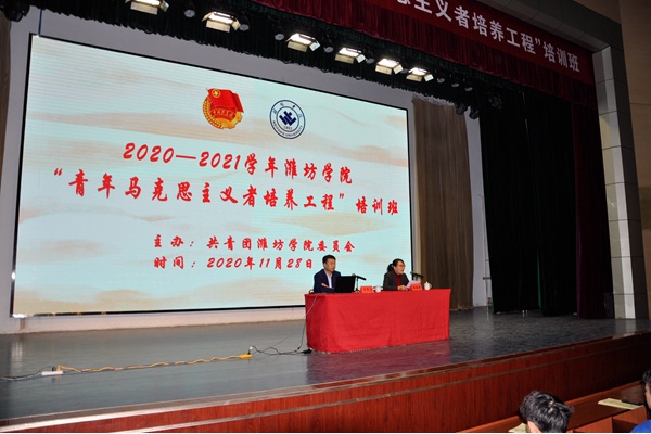 11月28日,我校2020-2021学年“青年马克思主义者培养工程”培训班开班暨首场报告会在图书馆报告厅举行。本次活动特邀山东省教育工委、潍坊市委宣传部党十九届五中全会宣讲员、潍坊学院马克思主义学院教授吕学山担任主讲嘉宾。本次活动由团委书记张晓静主持。2020级优秀团员共234人参加培训。