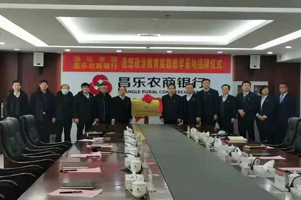 2020年12月29日,“潍坊学院思想政治教育实践教学基地”在昌乐农商银行举行签约仪式并成功揭牌,标志着全市首个高校思想政治教育实践教学基地落户昌乐农商银行。