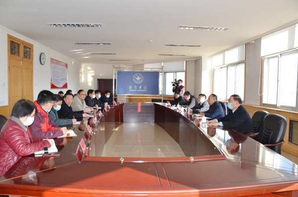 在座谈时,李东、冯滨鲁分别介绍了学校假期期间工作安排、安全保卫、留校师生信息管理、就地过年服务保障、疫情防控等相关工作。相关部门负责同志对具体情况作了详细汇报。初宝杰在讲话时,对学校的留校师生就地过年服务保障工作给予充分肯定,认为我校思想认识到位、管理措施到位,相关工作卓有成效。他代表市委市政府向大家致以新春问候和祝福。