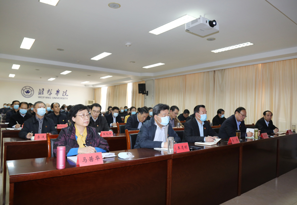 本网讯 3月14日,省委教育工委、省教育厅召开全省教育系统党史学习教育动员大会,深入学习贯彻习近平总书记在党史学习教育动员大会上的重要讲话精神,认真落实教育部党组、省委动员大会精神,对全省教育系统党史学习教育工作进行动员部署。省委教育工委常务副书记,省教育厅党组书记、厅长邓云锋出席会议并讲话。我校在行政楼705会议室设立分会场组织收看学习。全体校领导,各单位、各部门党政主要负责人集中收看了视频会议。