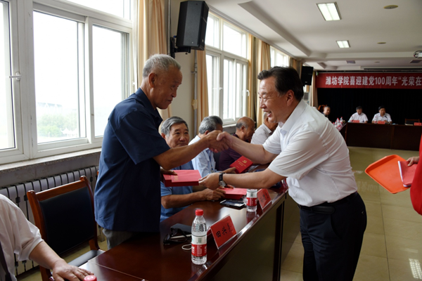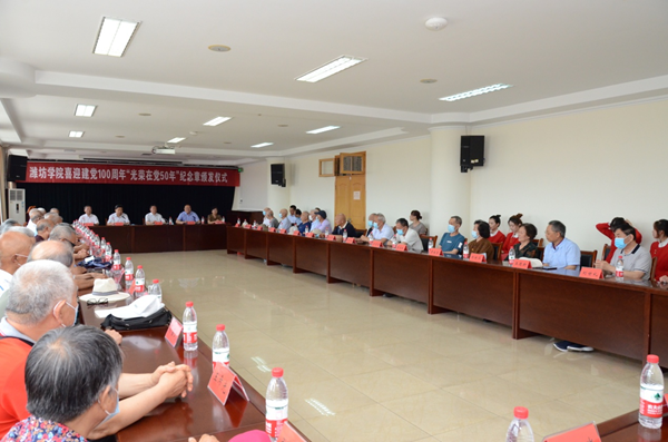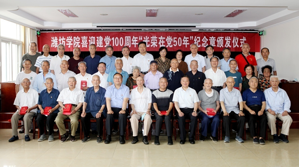 6月23日下午,潍坊学院喜迎建党100周年“光荣在党50年”纪念章颁发仪式在行政楼705室举行。学校党委书记李东,校长冯滨鲁,党委副书记王清明,副校长马茜华,党委委员、组织部部长李连成出席会议。获得“光荣在党50年”纪念章的老党员代表及离退休工作处负责人参加了会议。党委副书记王清明主持会议。