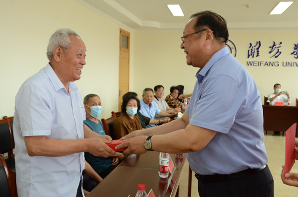 会后,学校党委成员分头到未出席纪念章颁发仪式的老党员家中进行了走访,送上了纪念章和慰问金。