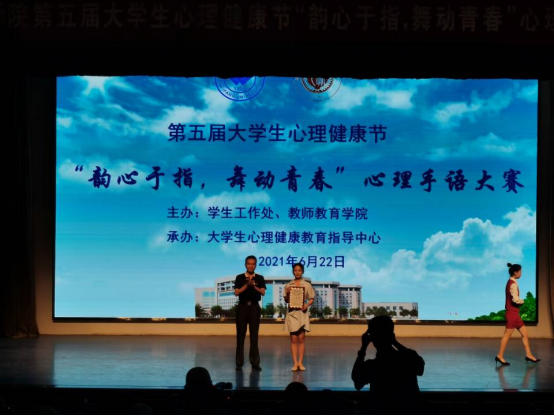 6月17日下午,由学生工作处主办、教师教育学院大学生心理健康教育中心承办的第五届大学生心理健康节心理手语大赛在图书馆报告厅举行。来自各二级学院的19个代表队、200余学生参加比赛。