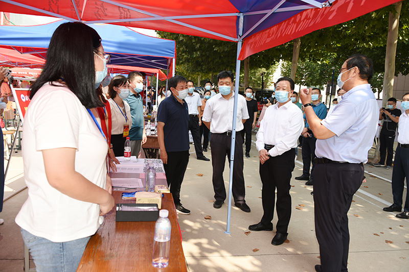 在弘德书院迎新现场,李东、冯滨鲁一行了解了新生入校流程和秩序维护的情况,详细询问了新生报到率以及相关数据。在各二级学院迎新点,李东详细了解各单位招生情况、迎新工作开展情况以及新生报到情况,与报到新生进行亲切交谈,了解他们的家庭情况、学业情况以及对入学报到的感受,并勉励同学们尽快完成角色转换,适应大学生活,为将来圆满完成学业打下基础。