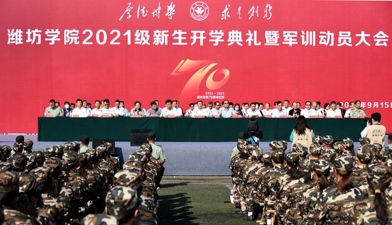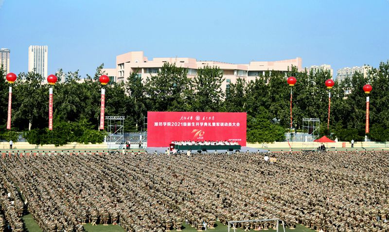 本网讯 秋日的潍院,天朗气清,惠风和畅。9月15日上午,潍坊学院2021级开学典礼暨军训动员大会在学校体育场举行。6718名新同学如约而至,为学校注入新活力。