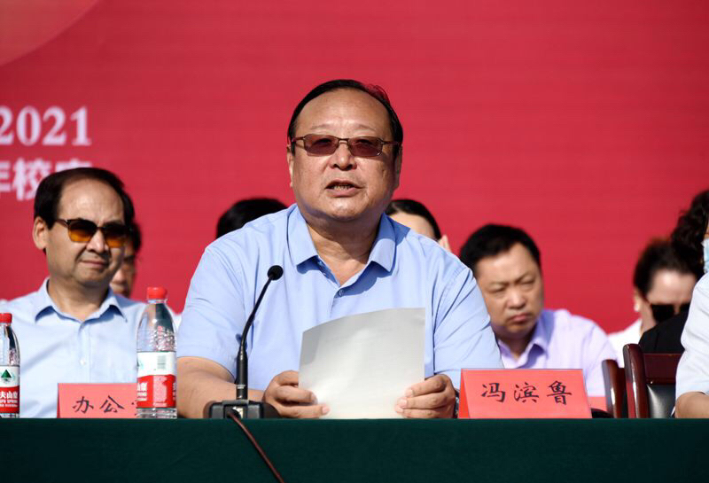冯滨鲁代表学校全体师生员工,向各位新潍院人表示祝贺和欢迎。他指出,今年是潍坊学院建校70周年,2021级新同学的到来为校庆增添了浓厚的喜庆氛围。70载峥嵘岁月,一代代潍院人接续奋斗、砥砺前行,推动学校发展迈上一个又一个新台阶。他寄语同学们,在“厚德、博学、求是、创新”校训和“和衷共济、艰苦奋斗、追求卓越”校风的熏陶下,以刻苦的磨砺成就真才实学,以奋斗的青春赓续潍院辉煌,交出一份不负青春、不负梦想的满意答卷。