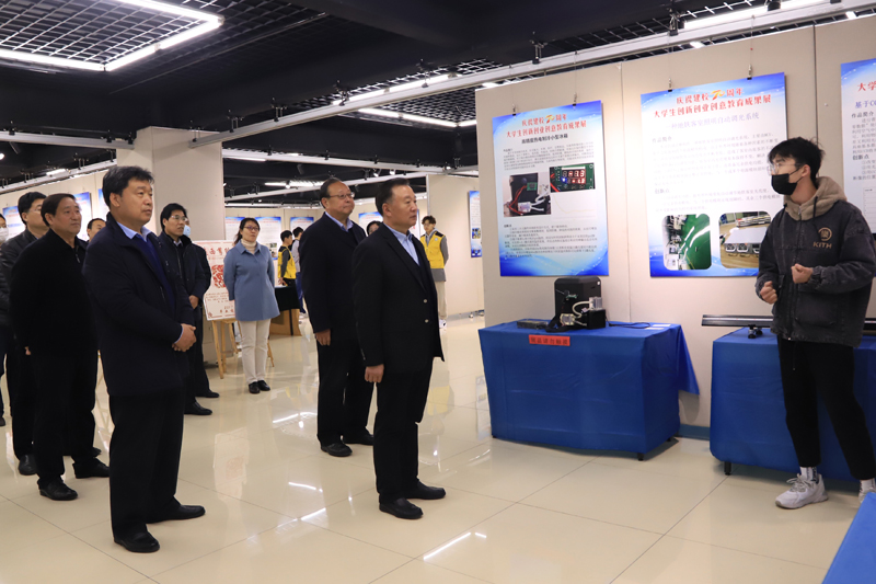 11月11日,学校党委书记李东,校长冯滨鲁,党委副书记王清明到大学生创业孵化基地参观“庆祝建校70周年,争做新时代追梦人”大学生创新创业创意教育成果展。办公室、科研处、教务处、团委、学生工作处相关负责同志陪同参观。