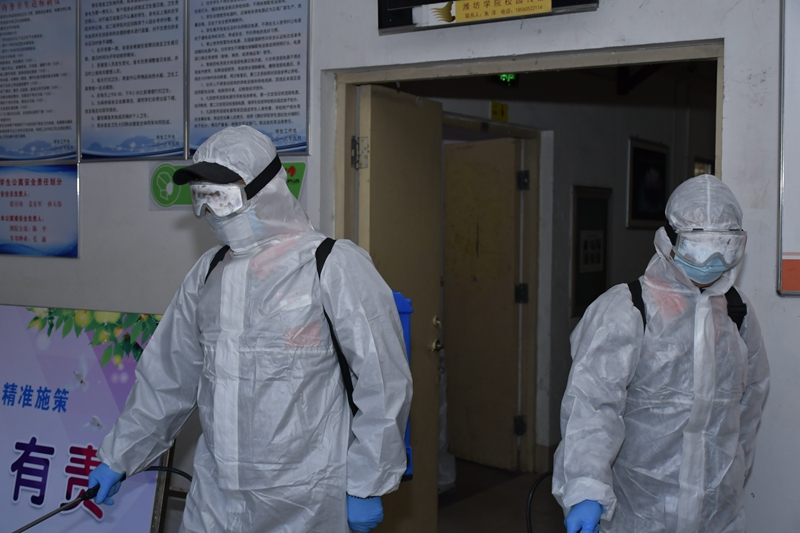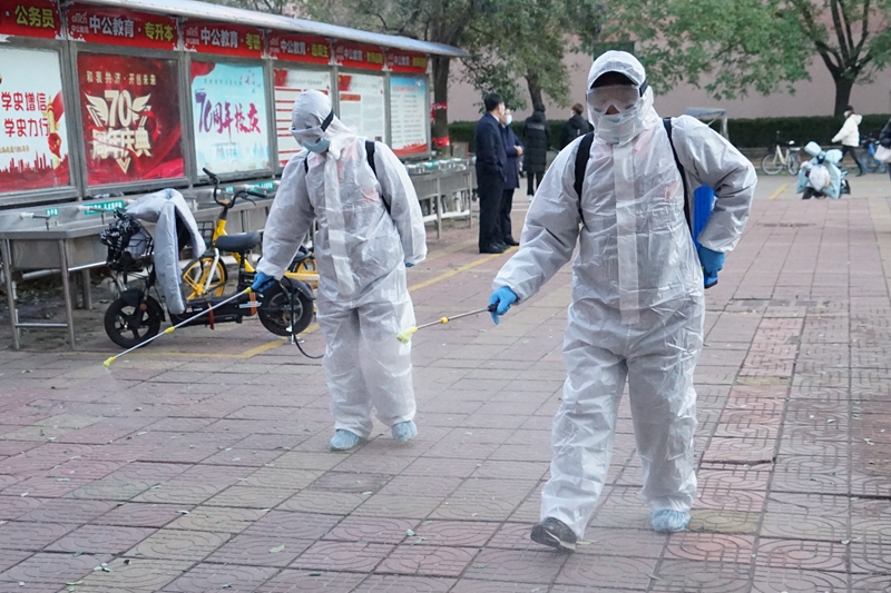 消杀人员对学生甲驻留场所进行终末消毒。沿学生甲行动轨迹,对有关场所全面进行彻底消毒。