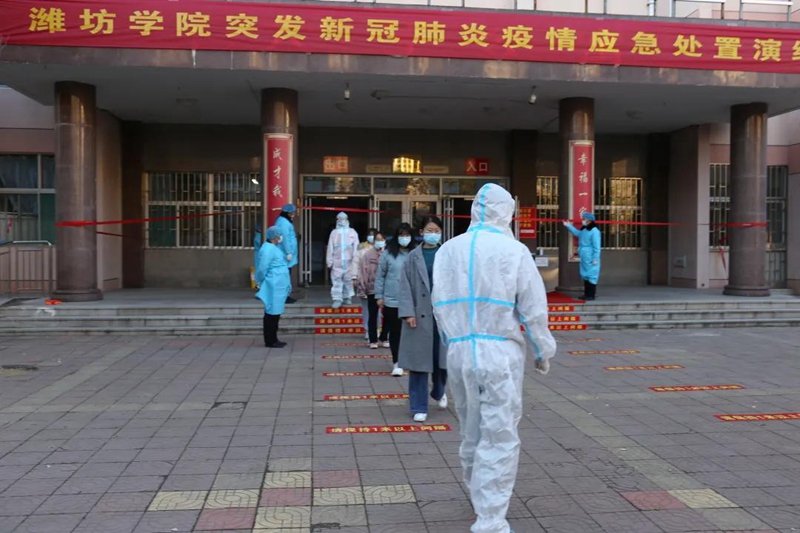 下午3时,冯滨鲁做动员讲话,宣布“潍坊学院2021年突发疫情应急处置演练,现在开始!”