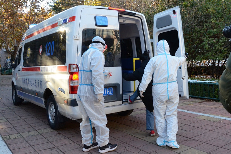 辅导员协助排查,舍友均为密切接触者,在宿舍戴口罩、间隔1米距离,等待救护车转运。