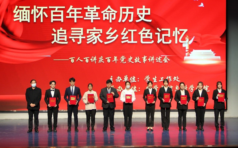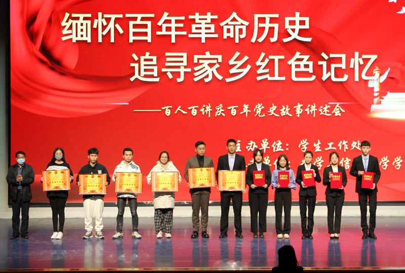 本次党史讲述会以“缅怀百年革命历史,追寻家乡红色记忆”为主题,以革命遗迹、革命文物、革命英雄事迹为切入点,通过让大学生深入挖掘并讲述家乡红色党史故事来追溯革命历史,展现中国共产党波澜壮阔的百年征程。经过前期初赛选拔,最终来自12个学院的15名同学进入本次活动决赛。参赛者们通过动情的讲述,将红色党史故事鲜活生动、真实感人地呈现出来。从“小萝卜头”宋振中到抗美援朝老战士,从“爆炸英雄”李混子到革命烈士陈龙飞,还原了一个个鲜为人知的英雄故事,重现了一件件可歌可泣的人物事迹;从《共产党宣言》中文译本到一封绝笔家书,从一个日记本到一块降落伞布,从一张纸条到一幅画像,一件件普通的革命文物背后蕴含着感人至深的革命故事,承载着党和人民英勇奋斗的光荣历史。经过评委现场评分,文学与新闻传播学院任佳禾同学的《放飞蝴蝶的男孩——小萝卜头》与数学与信息科学学院崔嘉同学的《忆最可爱的人——我的爷爷崔有同志的故事》荣获本次比赛的一等奖。