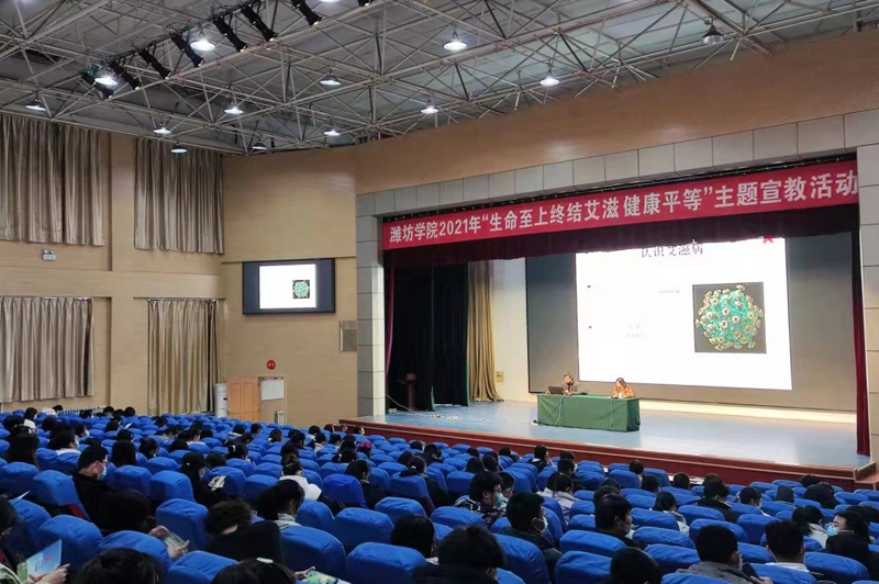 12月2日,校医院指导大学生红十字协会举办了以“生命至上、终结艾滋、健康平等”为主题的知识讲座。张栋医师围绕艾滋病的基本知识、传播途径和防控措施以及艾滋病相关的国家政策进行了讲解。现场近300名大学生骨干聆听了讲座。