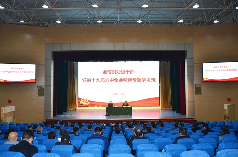 12月16日,全校副处级干部党的十九届六中全会精神专题学习班开班仪式在图书馆报告厅举行,校党委副书记王清明主持仪式并作动员讲话,特邀马克思主义学院吕学山教授进行党的十九届六中全会精神宣讲。全体副处级干部参加活动。