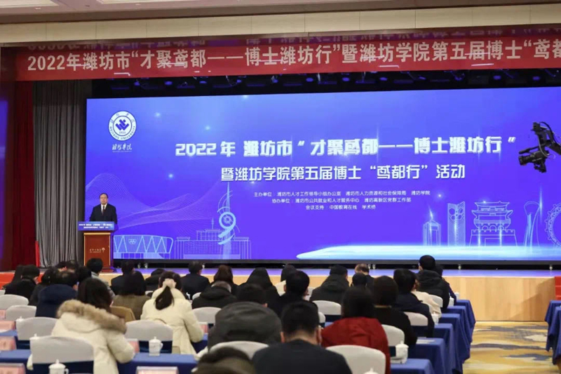 本网讯 1月22日—23日,2022年潍坊市“才聚鸢都——博士潍坊行”暨潍坊学院第五届博士“鸢都行”活动举办。22日上午举行开幕式,来自海内外242所高校的370余名优秀博士通过线上线下方式参加活动,线上直播互动人数超过18万人次。