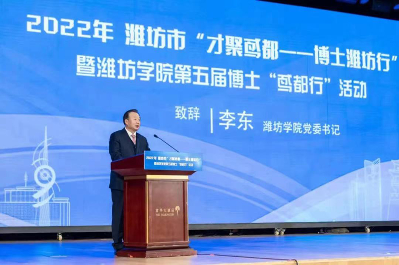 潍坊市委组织部分管负责同志在致辞中简要介绍了潍坊市基本情况和人才发展环境;潍坊市人社局主要负责同志推介了青年人才引进政策,表示将深入开展“双招双引”攻坚行动,全力为各类人才施展才华、创新创业搭建平台,与海内外专家博士共谋发展、共赢未来。