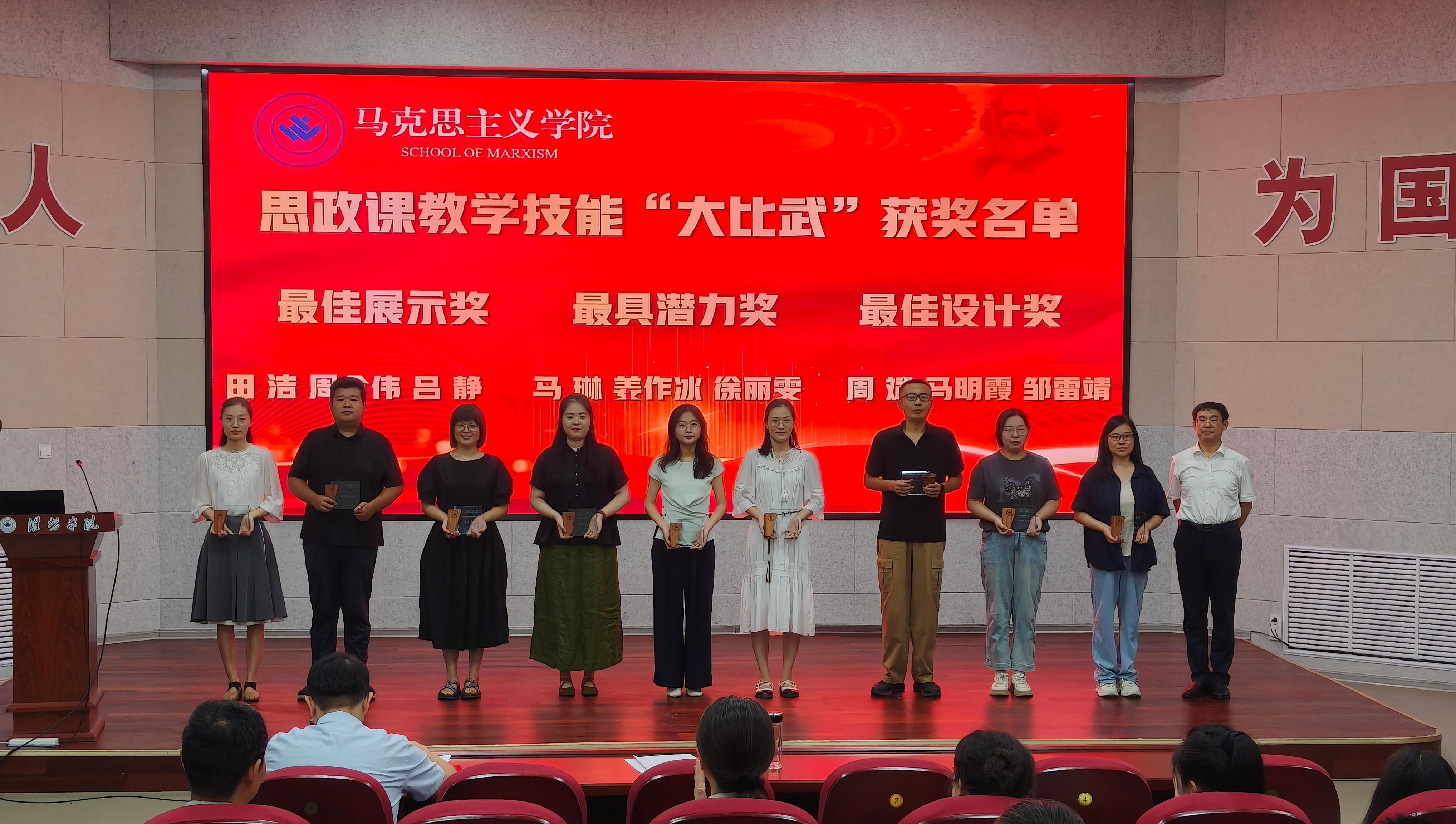 比赛过程中,参赛教师围绕思政课程核心内容,结合时代热点与学生实际,精心设计教学环节,灵活运用多种教学方法,充分展示了扎实的教学功底、良好的精神风貌和创新的教学理念。现场气氛热烈,充分体现了“以赛促教、以赛促研、以赛促改”的活动宗旨。经过激烈角逐,最终评选出最具潜力奖、最佳展示奖、最佳设计奖各3名。此次“大比武”活动不仅为青年教师搭建了交流互鉴、锤炼本领的平台,也推动了思政课教学质量的提升。学院将持续深化思政课改革创新,努力打造一支政治强、情怀深、思维新、视野广、自律严、人格正的思政课教师队伍,为培养担当民族复兴大任的时代新人贡献力量。