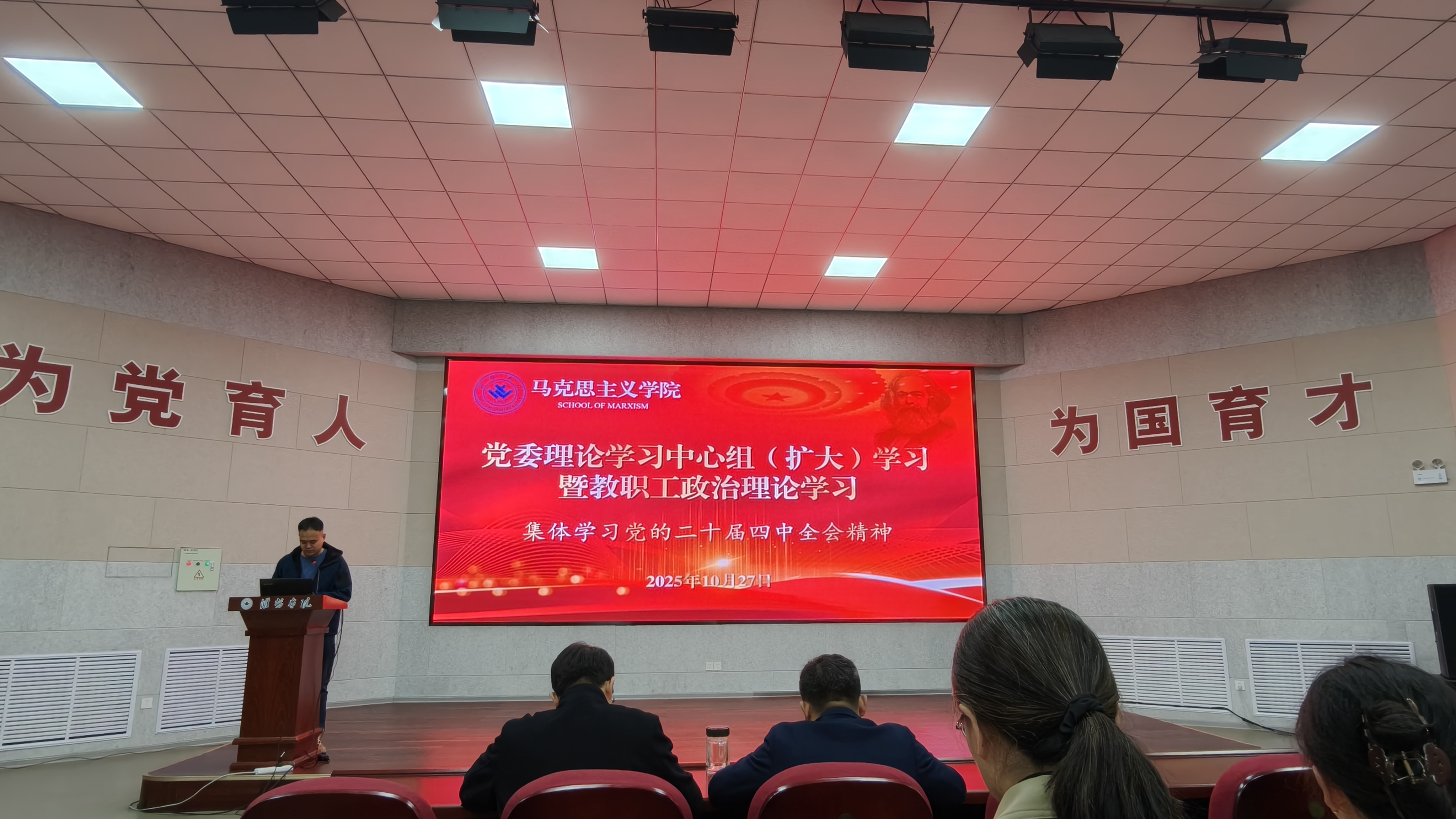 10月27日上午,学院党委理论学习中心组(扩大)在齐贤楼2109会议室举行,专题学习党的二十届四中全会精神。学院党委书记王锋主持学习活动。