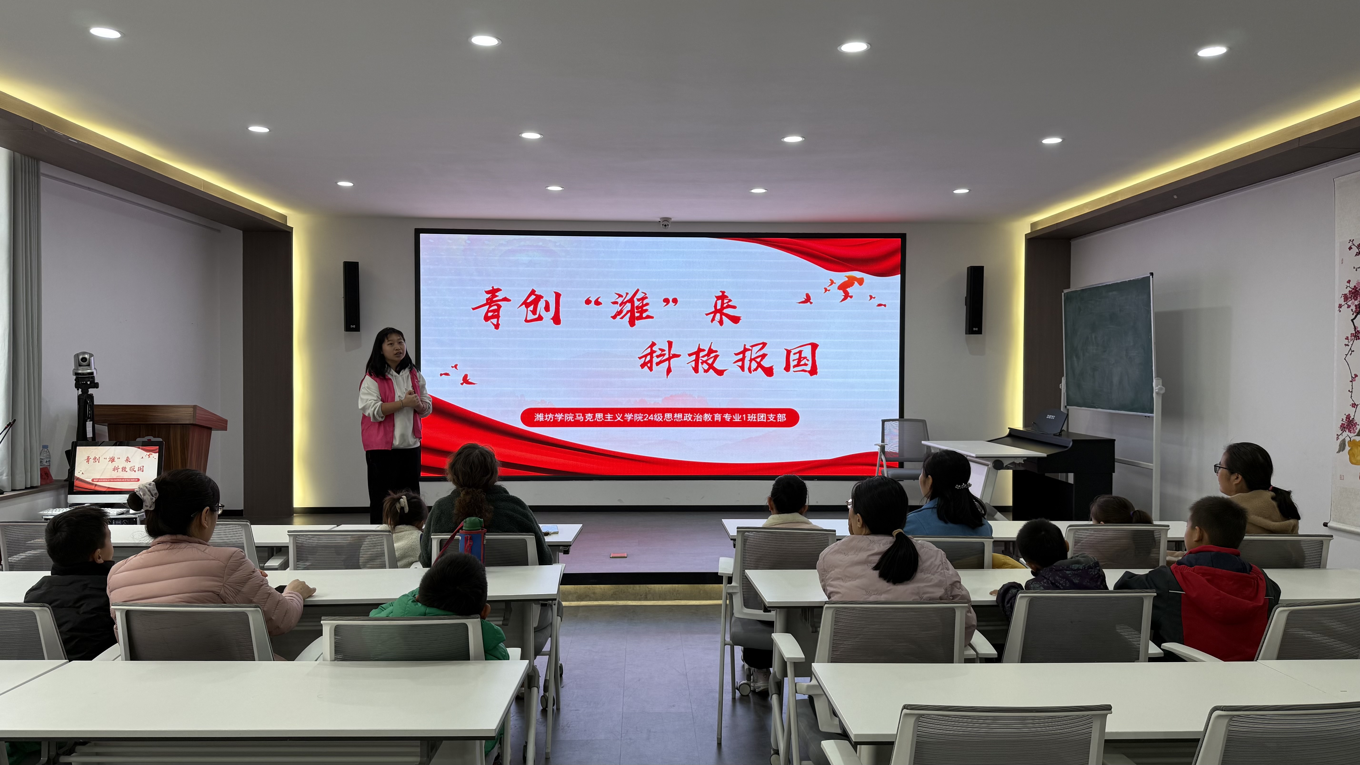 本次宣讲结合潍坊学院学科建设、科研创新、大学生创新创业赛事中的成果,系统展示了学校在科创领域的实际经验。此外,团支部成员还分享了优秀青年科创团队在红色文化传承、非遗技艺创新等多领域攻坚克难、追求卓越的奋斗故事,生动诠释出青年群体“以科技报国”的责任与情怀。