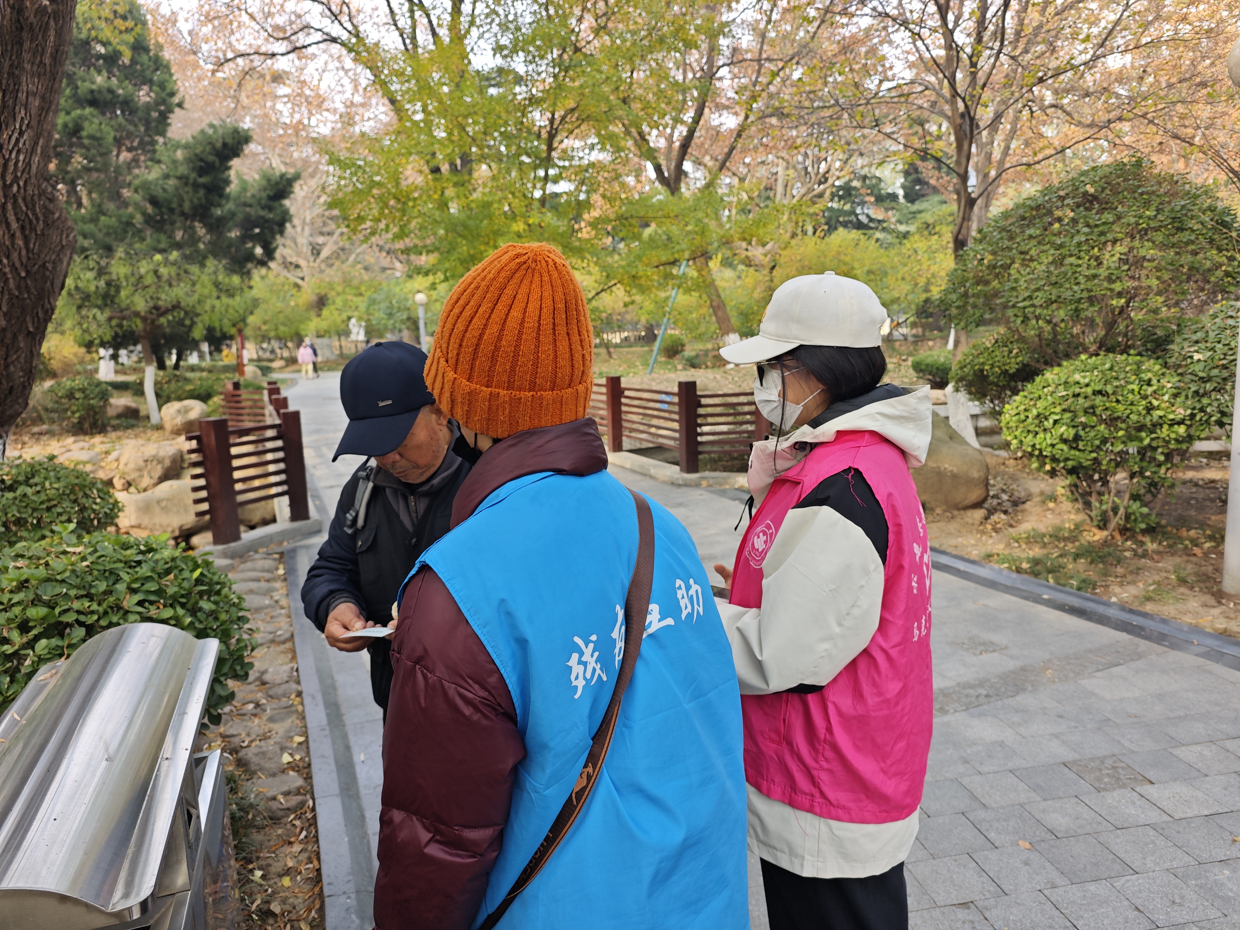 为助力残疾人废品回收从业者拓宽服务渠道,提升服务知晓度与便捷性,11月23日,学院求是志愿服务队走进樱园社区、人民公园、富华游乐园,开展助残公益名片发放活动。