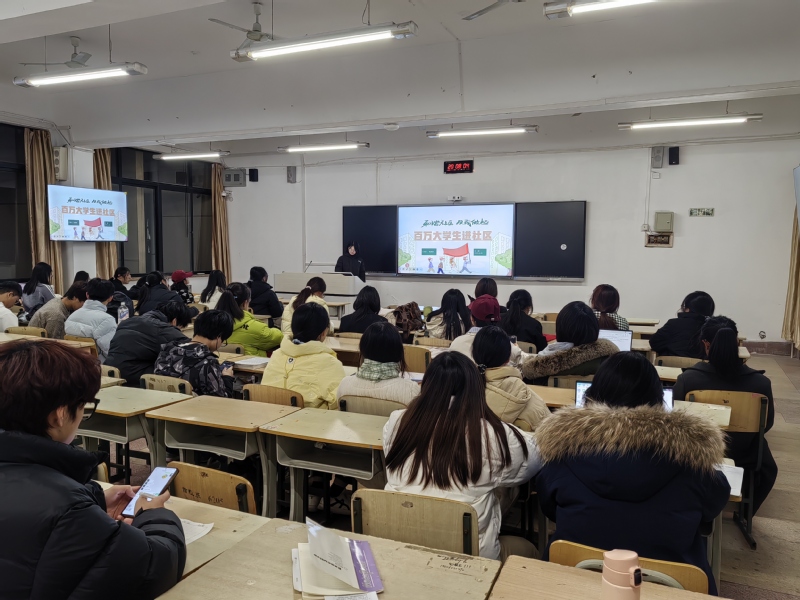 为深入贯彻习近平总书记关于青年工作的重要指示精神,切实增强大学生服务基层、奉献社会的责任意识,11月27日,学院于2501教室举办“百万大学生进社区”主题宣讲暨寒假“三下乡”社会实践工作部署会,学院2025级全体学生参会。