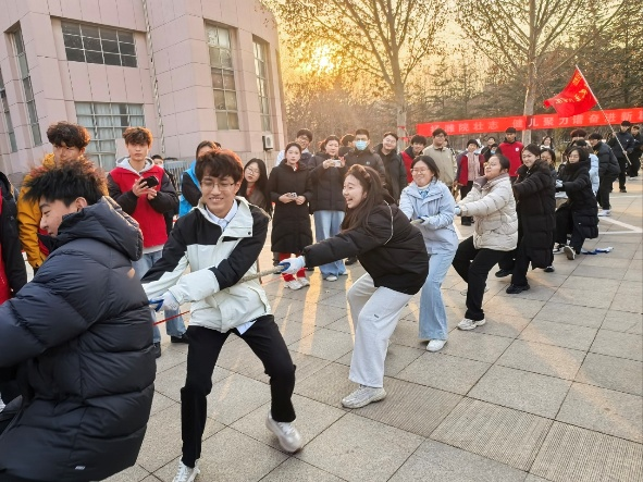 为纪念“一二・九”抗日救亡运动90周年,传承红色基因与爱国精神,引导学生挺膺担当,12月9日,潍坊学院2025年纪念“一二・九”运动大学生拔河比赛在行政楼后广场举行。学院积极组织学生参与,在多轮激烈角逐中脱颖而出,最终荣获比赛三等奖。