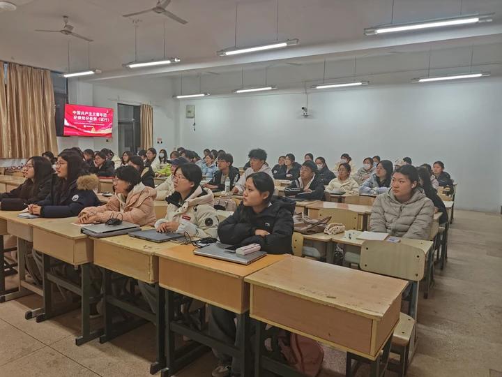 为进一步强化纪律观念,筑牢学生骨干纪律防线,引导学生骨干以身作则发挥模范带头作用,12月12日,学院于2501教室开展团纪教育活动,学院全体学生骨干到场学习。