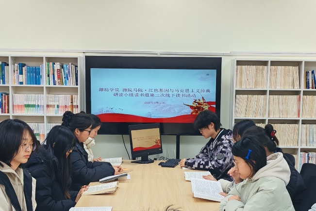 为深化马克思主义经典研读,推动经典理论与生活实践深度融合。3月13日,学院在2501图书阅览室举办潍院马院·红色基因与马克思主义经典研读小组读书组第三次线下读书活动。
