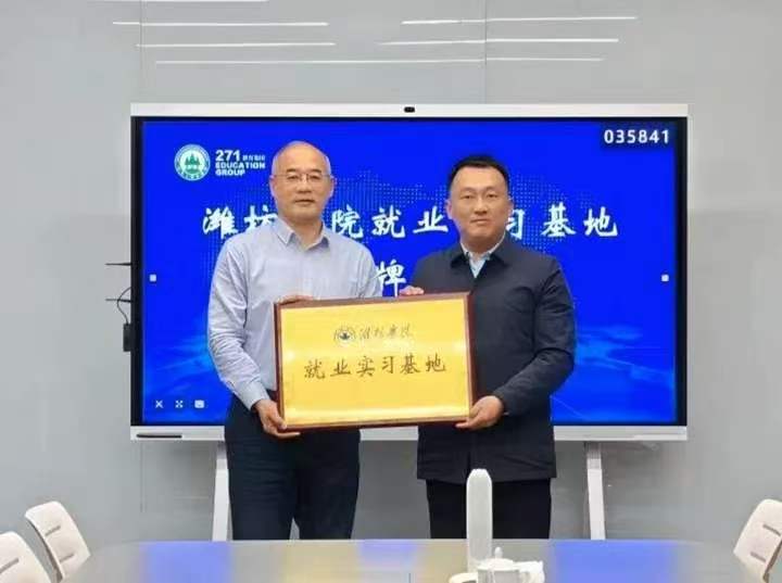 在山东二七一教育科技集团有限公司双方围绕学校办学特色、人才培养改革、人才需求等内容展开深入交流。赵丰平阐释了“271教育”全新内涵,即两支队伍共同体建设、七个课程领域、以每一个人的整体发展为核心。王锋与赵丰平共同为潍坊学院“就业实习基地”揭牌。在山东金星教育科技有限公司双方就校企合作发展,人才岗位匹配需求等进行深入讨论。