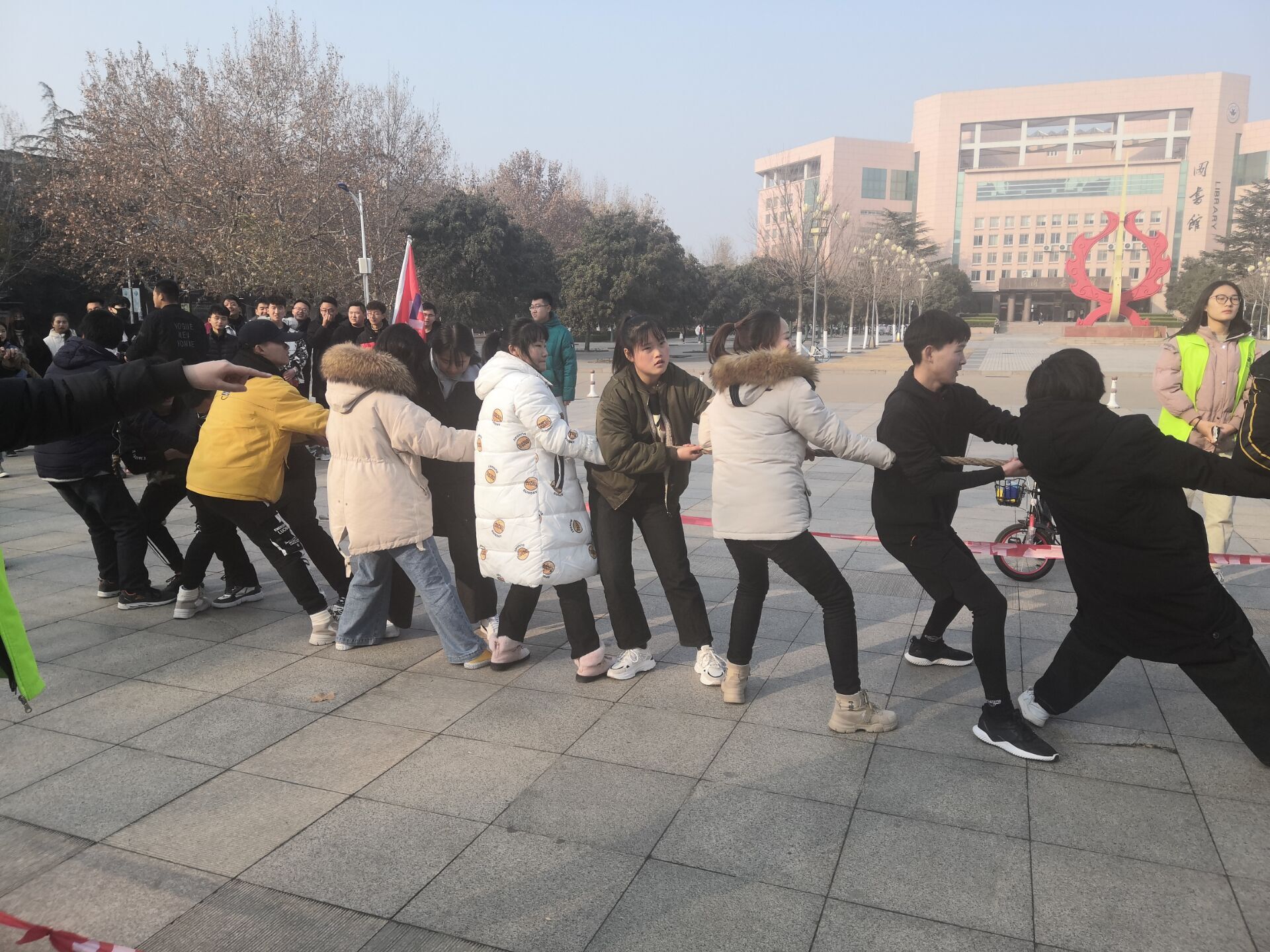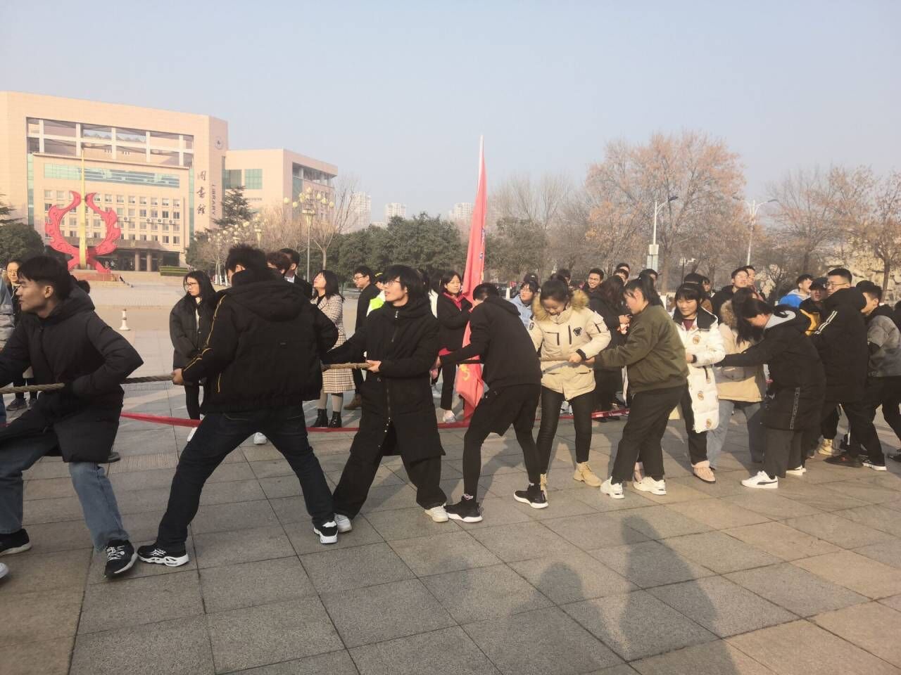 为纪念“一二·九”运动,增强广大同学们的集体合作意识,激发青年学子的爱国热情,响应团中央“走下网络、走出宿舍、走向操场”的号召,共青团潍坊学院委员会、潍坊学院学生会于2019年12月8日下午一点半在行政楼后广场举办了潍坊学院2019年纪念“一二·九”运动大学生拔河比赛。参与人员有马克思主义学院代表队和各二级学院代表队。